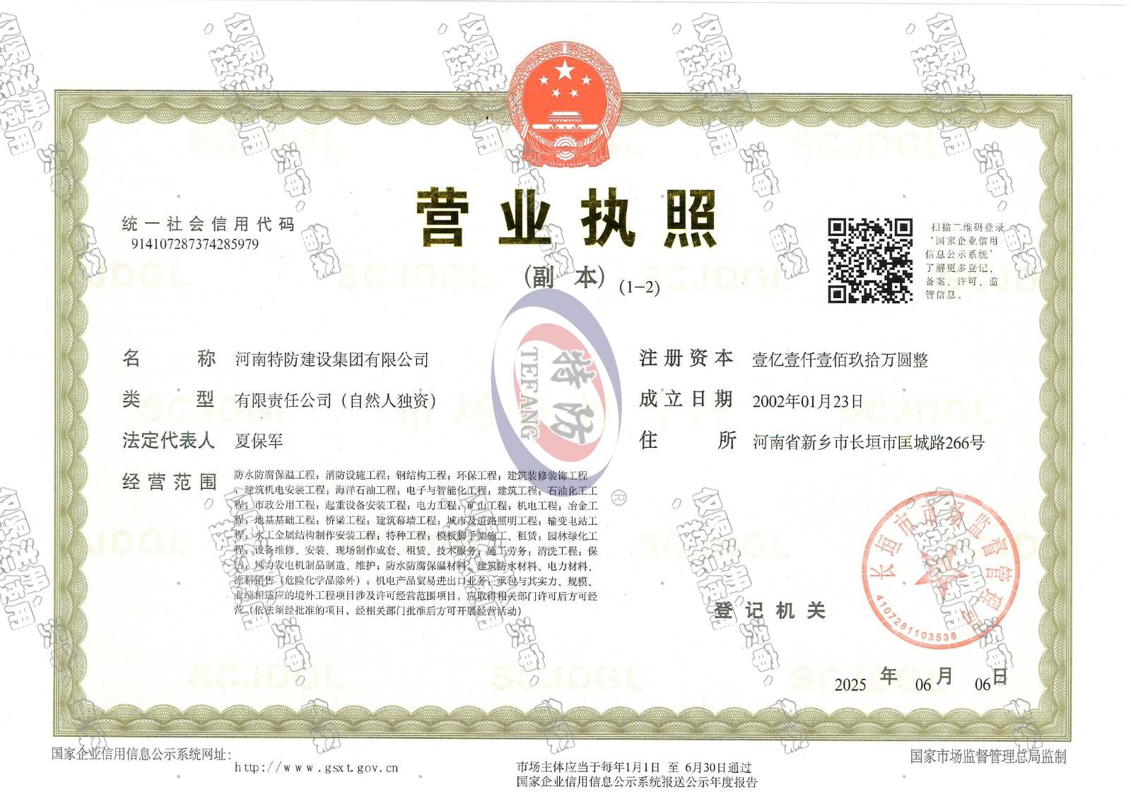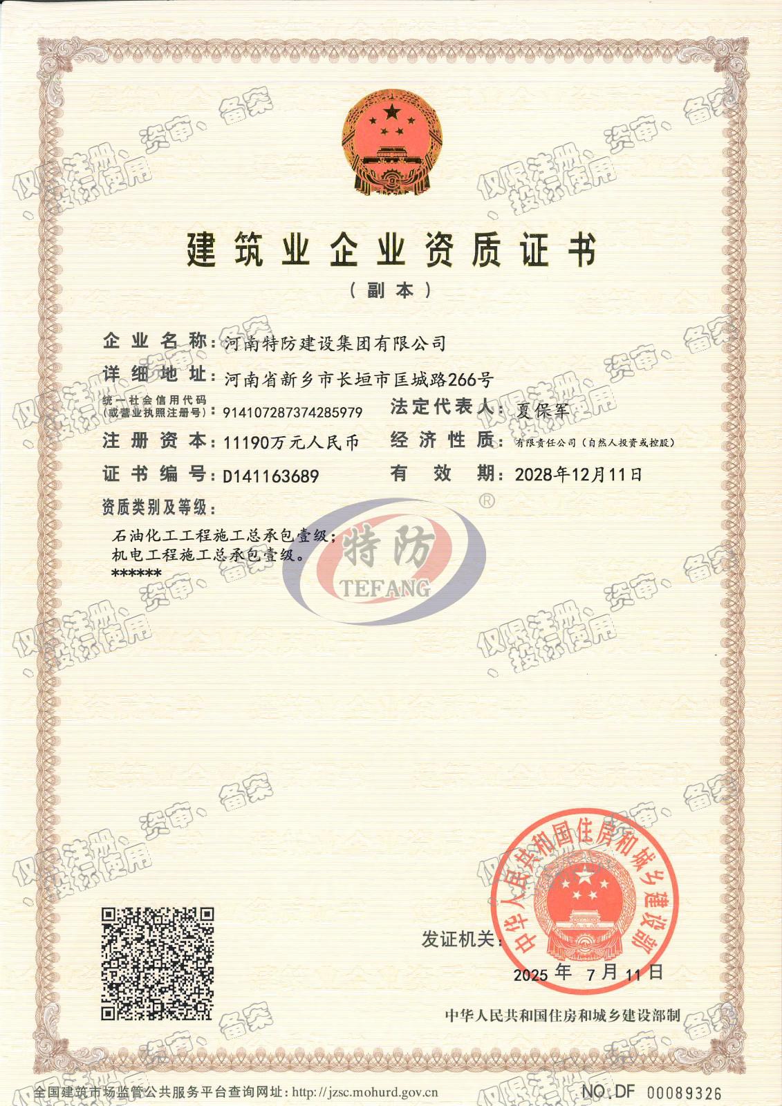 特防资质/tefang qualification