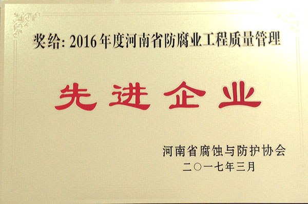 2016年度河南省防腐业工程质量管理**企业-河南省腐蚀与防护协会2017.3.1